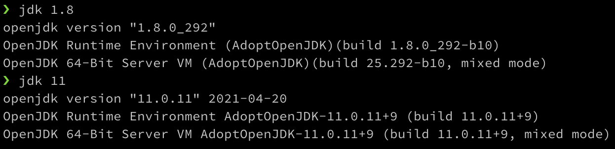 jdk 명령어를 설정하고, jdk 명령어를 사용하고자 하는 OpenJDK 의 버전을 변경할 수 있다.