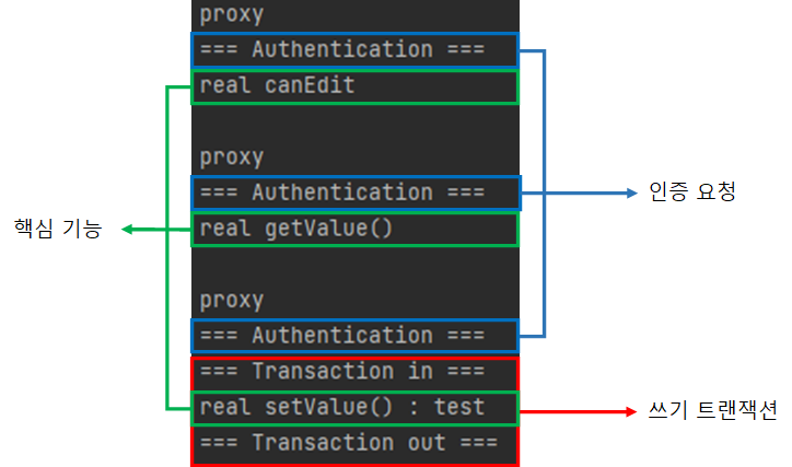 모든 메소드를 호출할 때, 프록시 객체를 통해서 호출하게 된다. 앞서 모든 메소드는 접근 인가를 받아야 했다. method.invoke() 를 실행하기 전에 인증을 진행한다. 메소드의 이름이 setValue 가 아니라면, 인가만 받고 method.invoke() 를 호출한다.